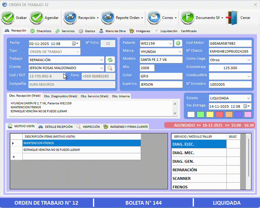 Podemos diseñar una Orden de Trabajo totalmente personalizada y certificados digitales para sus servicios. Muchos talleres lo solicitan porque sus clientes son cada vez más exigentes y valoran documentos claros, profesionales y alineados a la identidad del negocio.